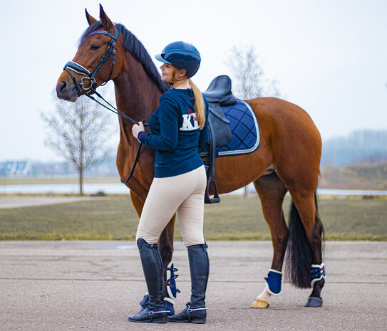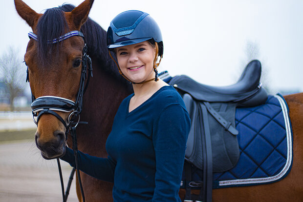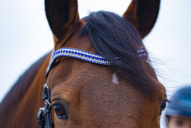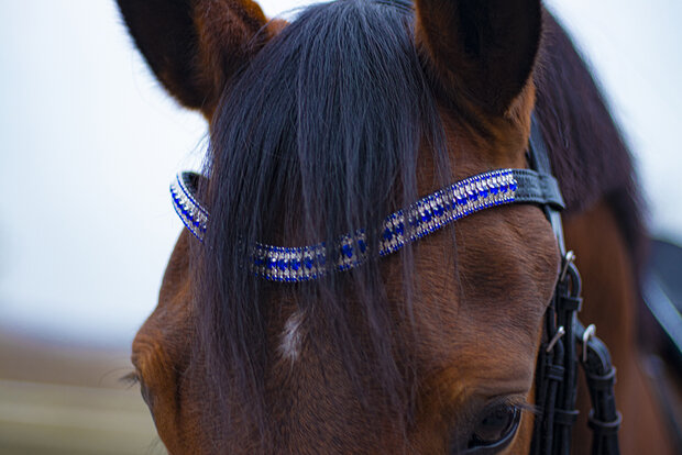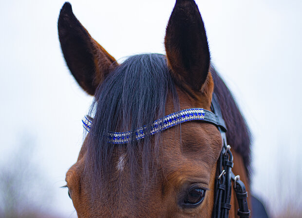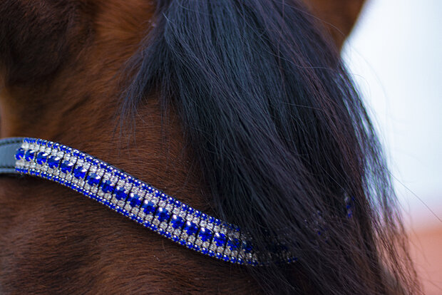 The crystals of a Bling browband are attached several times with an extra thick thread to a leather basic browband in black, brown or cognac colored leather. The extra strong attachment makes the browband suitable for use when practicing your horse riding sport. Check out our sizing chart with also more information on how to measure your browband. More information about the different types of loops can be found on this page.