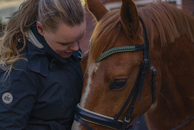With a Bling browband you will not only have everyone staring at you, but you will also shine! Due to the extra firm attachment, the browband is suitable for use when practicing any equestrian sport. Whether you are a dressage rider, show jumper, driver or a recreational rider. Because the browbands are handmade, many variants are possible. Do you have a black, brown or cognac color bridle, do you need a normal, small or double loop? It's all possible!